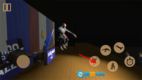 2、点击右侧的动作按钮,角色就会做出相应动作,像是跳跃、跨越障碍或者躲避危险。