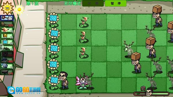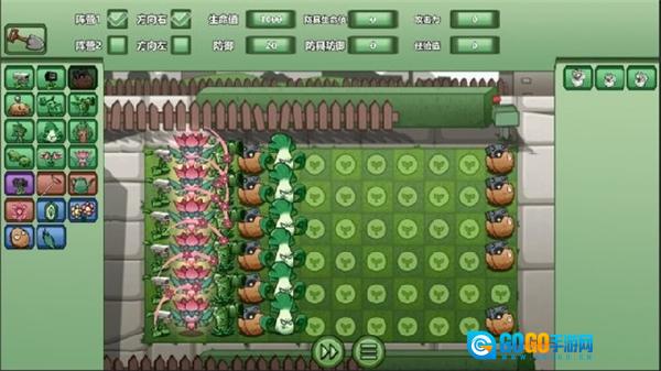 4. 将左侧的植物拖到战场的格子中,通过合理组合不同种类的植物来搭建防线。