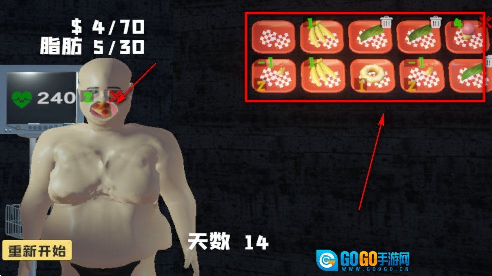 能够用挣得的钱去购置各类食物,还能够通过消耗脂肪来【撑大肚皮】
