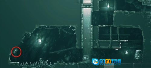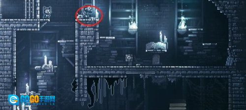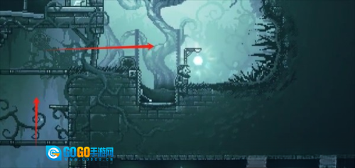 4. 朝右行进,砍断拦住去路的藤蔓,接着继续朝右走,进入城堡之后,朝着右下方火盆的方向前行。
