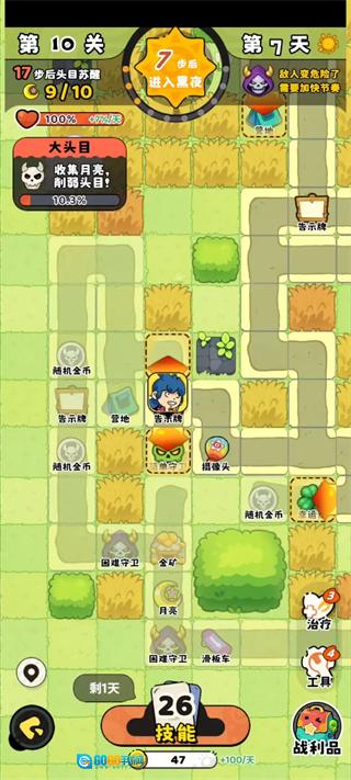 7、在冒险前期要是打不过,白天就去踩空地,晚上则获取资源。能苟着就苟着,等流派升星、技能成型之后,就会变得简单了。