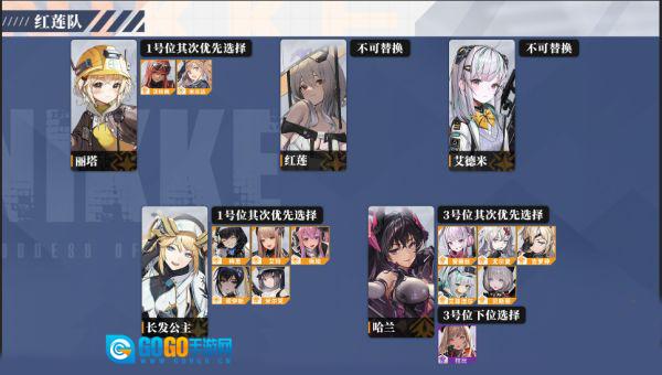 1. 阵容成员包含:丽塔、红莲、艾德米、长发公主以及哈兰。
