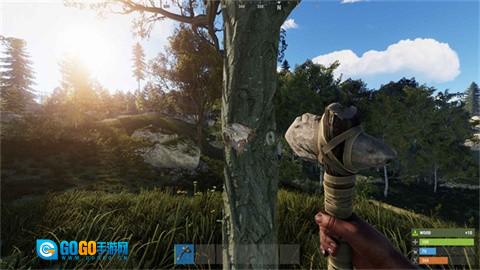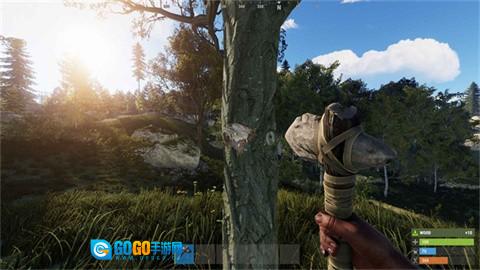 首先,要寻找树木、木材堆以及岩石块,利用石头来收集木材和石头资源。