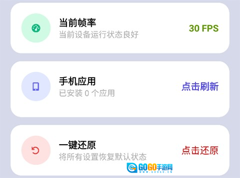 2. 帧率设定、查看手机已安装的应用程序、一键还原(把所有设置恢复至默认状态)