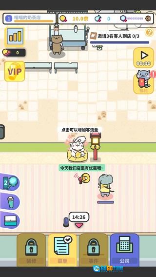 3、该游戏主要玩法为模拟经营,玩家可借助售卖奶茶获取金币,进而将奶茶店发展壮大。