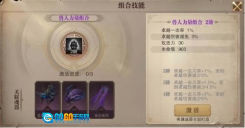 紫色技能“兽人力量”一经激活便为2阶,其激活所需的魂器为:【蓝魔龙的头甲】、【毒蝎之钳】、【皇后披风】。鉴于该技能为紫色品质,每种魂器均需30张对应的碎片方可激活。激活“兽人力量”组合技能后,会提升【卓越一击几率】与【受到卓越伤害减少】这两个属性,最高可升至6阶。其中,2阶时卓越一击几率增加1%,受到卓越伤害减少3%;满6阶时卓越一击几率增加3%,受到卓越伤害减少9% 。由于品质更高,相较于绿色组合技能,紫色组合技能提升的数值幅度大得多,在战斗中所能带来的正面效果也更为显著。