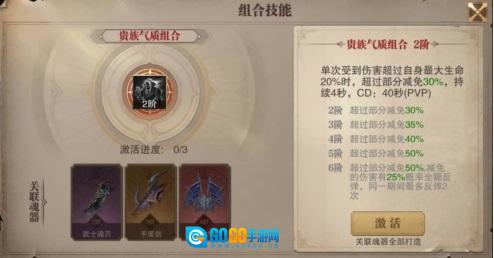 红色技能贵族气质激活即为2阶,激活所需材料为:【武士魂刃】(30个碎片激活)、【手里剑】(60个碎片激活)、【冰后之冠】(90个碎片激活)这三种魂器。当激活贵族气质组合技能后,在PVP中若单次受到伤害超过自身最大生命值的20%,超出部分将减免30%,持续时间为4秒。值得注意的是,激活2阶时超过部分减免30%,3阶减免35%,4阶减免40%,5阶则减免50%!