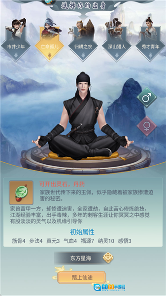 1在正式开启游戏之前,玩家能够自主选择自身的出生设定以及性别。不同的出生设定会赋予玩家各异的属性,并使玩家获得不同的物品。
