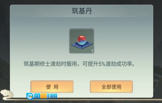 5、当灵气出现外溢的情况时,便需要进行渡劫。借助丹药能够提升渡劫成功的概率,要是渡劫失败,则会扣除相应的修为点。