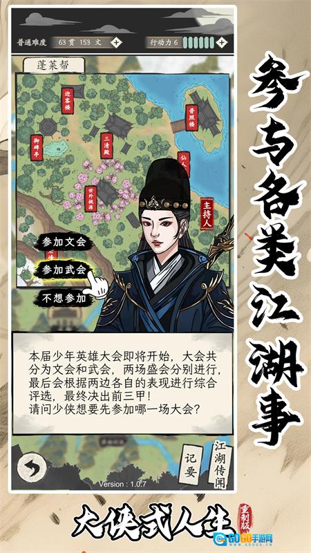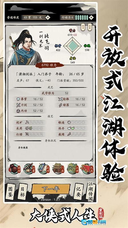 《大侠式人生》是一款武侠养成类RPG游戏。在游戏中,玩家将化身为一名初涉江湖的侠客,从研习基础武学起步,进而闯荡各个门派,结识各路豪侠,修炼独特心法,最终谱写属于自己的江湖传奇篇章。