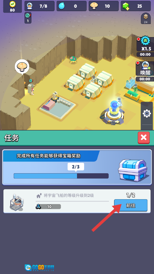 2. 轻点【前往】,去完成升级宇宙飞船的任务,进而获取宝箱奖励。