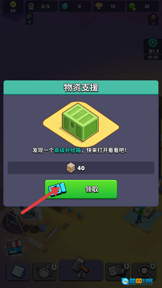 4、轻点【领取】按钮,即可收获高级补给箱与物资,有效扩充资源储备,为游戏发展增添助力。