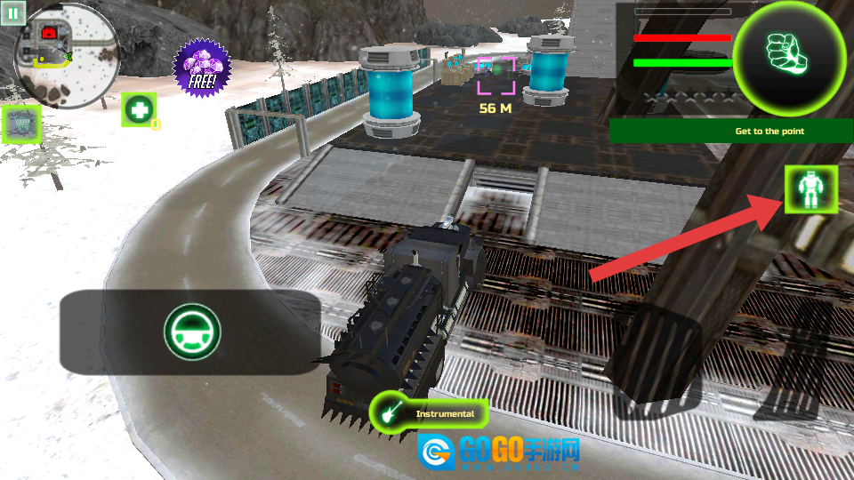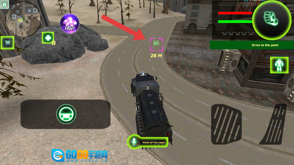 1. 依据任务提示“Drive-to-the-point”,驾驶载具驶向目标地点,行进过程中留意路况以及距离提示。