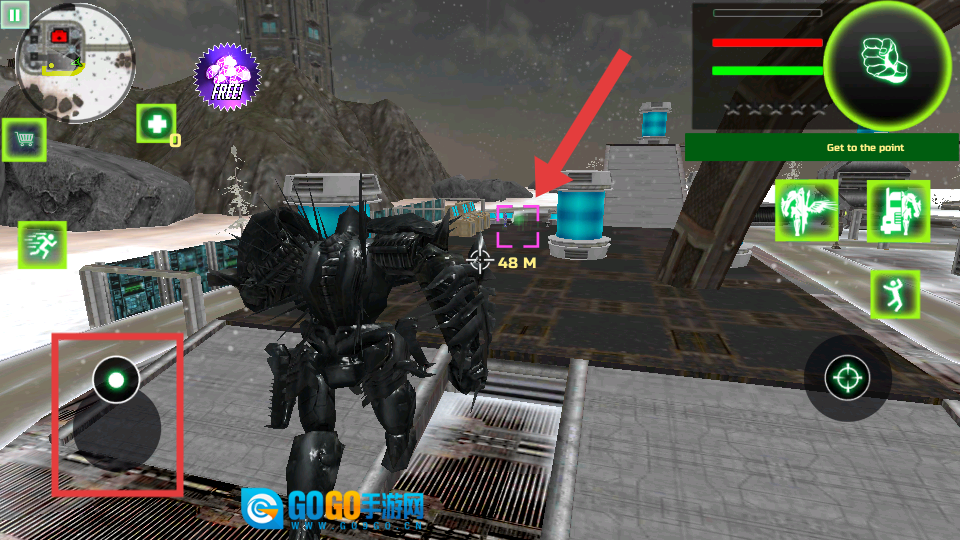 3、操作机器人移动,借助左侧的方向按钮来调整其位置,朝着任务目标点进发,以完成互动或者战斗任务。