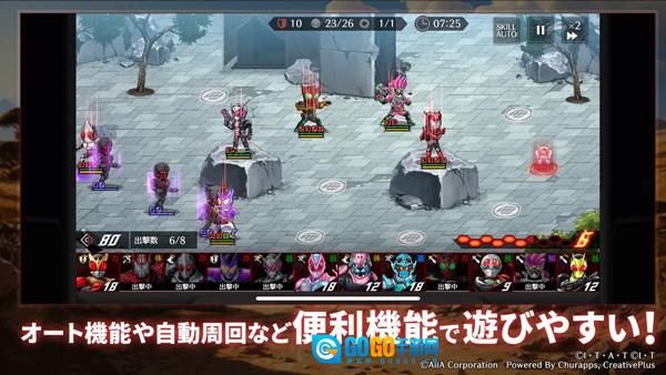 这款游戏的核心运用经典塔防玩法,玩家要在防卫线上有策略地安排不同的假面骑士,以此抵御敌人的进攻。游戏中收录了历代假面骑士的招牌必杀技、经典变身道具,还有标志性的机车与武器等多样装备。为了让玩家有更好的游戏体验,游戏具备自动战斗与倍速功能;当玩家完成关卡挑战后,还能开启周回模式,方便重复获取养成资源。
