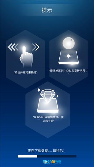 4、通过按住并拖动进行操控,让球掉落到中心位置,以此改变砖块尺寸。获取钻石后,可解锁曲目、弹球以及主题。