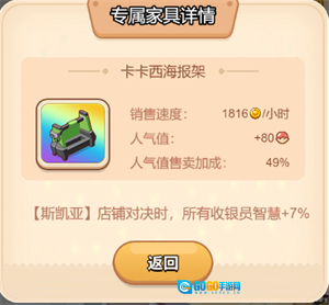 在店铺对决中,这个家具的效果同样会得到增强。与其他情况不同的是,此次增强仅针对该员工一人,然而数值却有大幅度的提升。