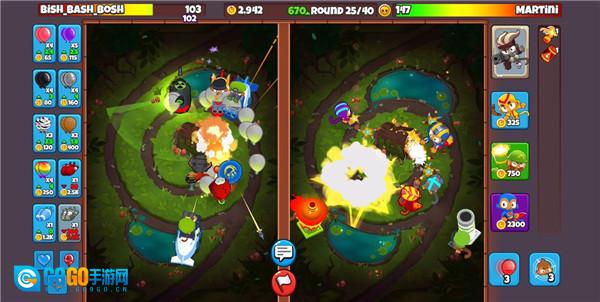 实时布局与经济管理:游戏启动后,玩家要在地图上安置猴子塔,以此防御自动生成的气球,同时还能够耗费金钱向对手发送气球。成功发送或防御气球都能获取收入,这些收入可用于升级猴子塔或者发起更为强劲的进攻。