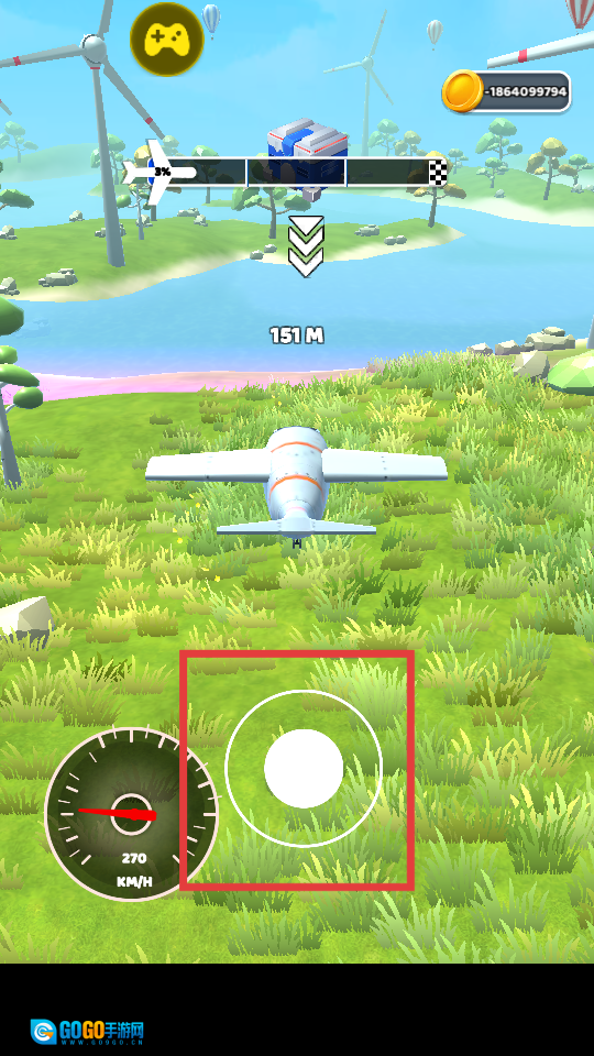 4、飞行途中,利用方框内的【虚拟按钮】操控飞机飞行方向,尝试突破记录。