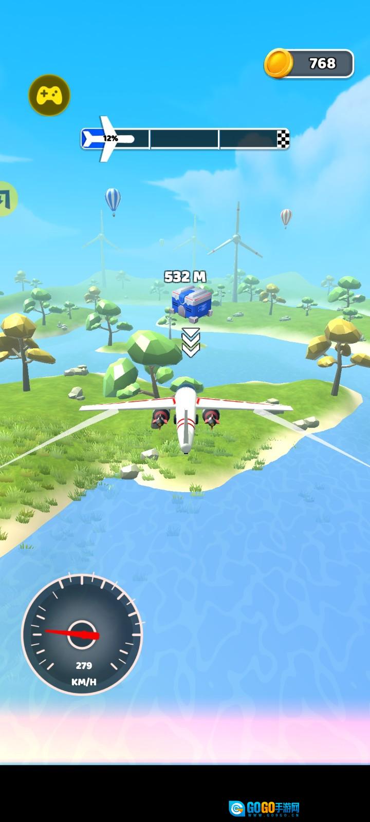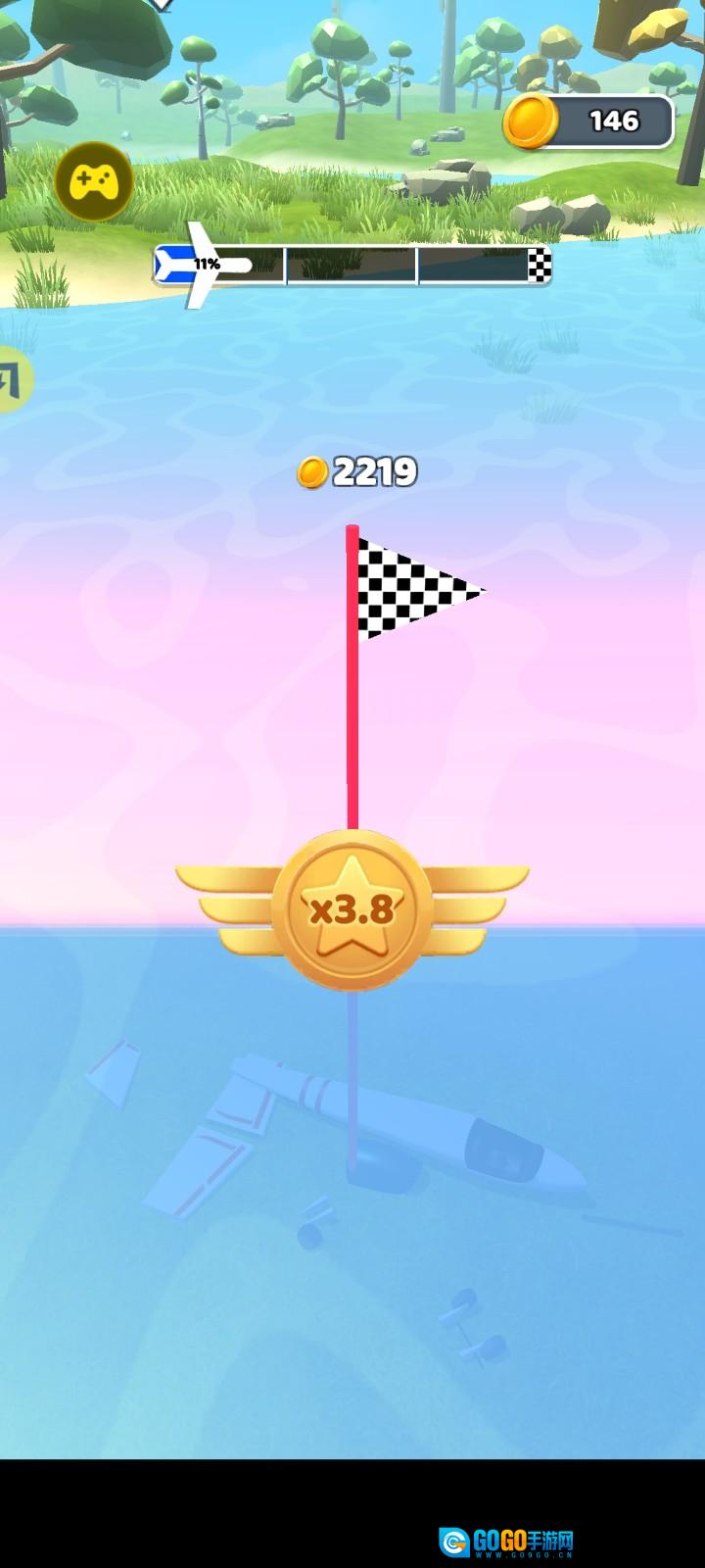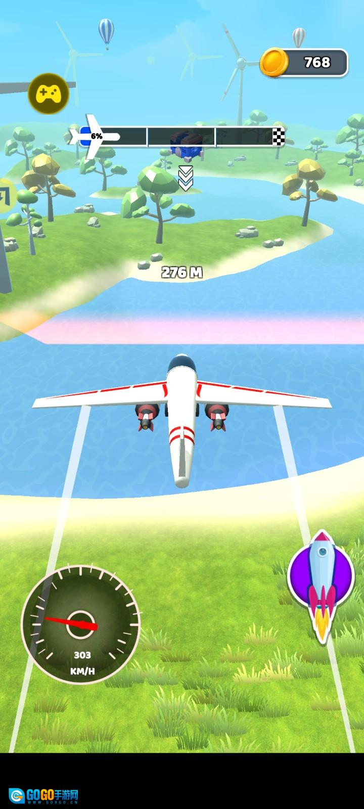 3、当蓄力值达到最大值的时候,松开手指,飞机就能飞出去。