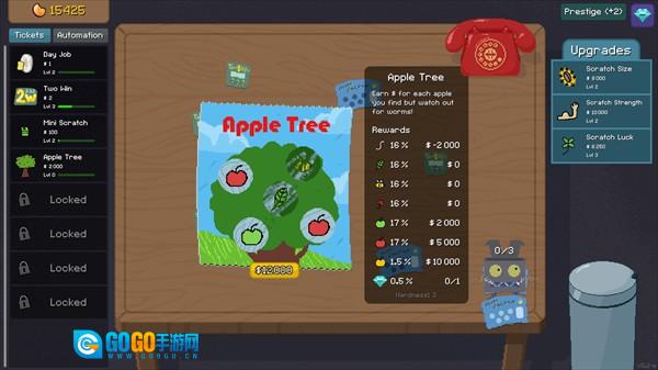 2、从手动刮取1元卡片,到自动刮取10000元卡片;从没有被动收益,到拥有双份被动收益(自动刮卡 + Apple Tree)。借助持续升级,提升你的收益。