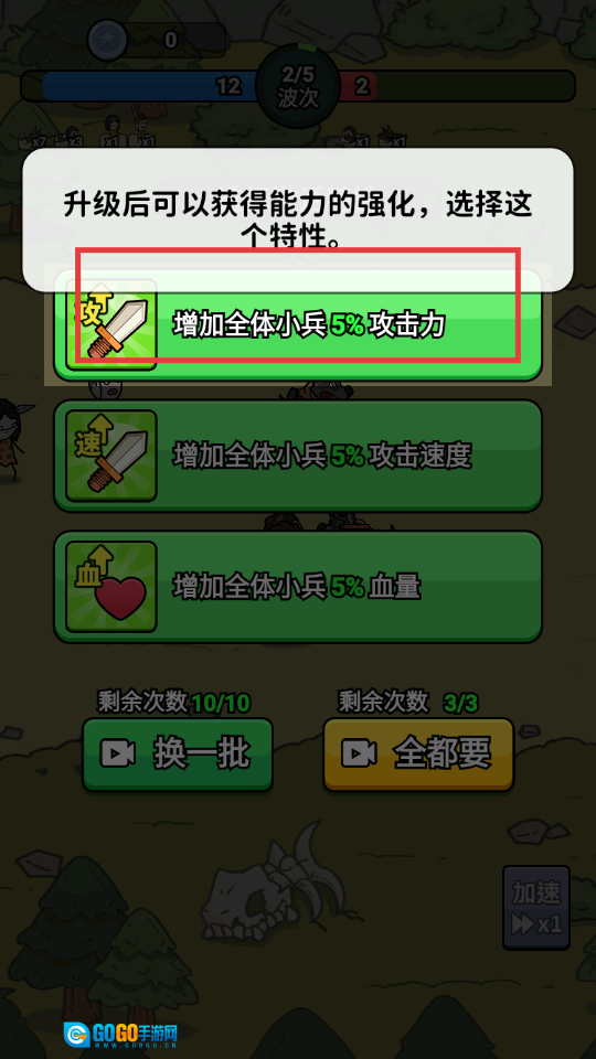 4、选取【增加全体小兵5%攻击力】这一特性,以此强化小兵能力,进而提升战斗效率。
