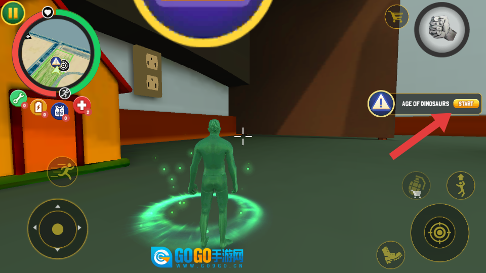 1. 点击名为【AGE - OF - DINOSAURS - START】的按钮,启动恐龙时代任务。