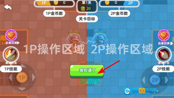 4、战斗过程中,通过操控2P操作区域的摇杆来移动角色,与队友相互协作,一同击败敌人,达成目标。