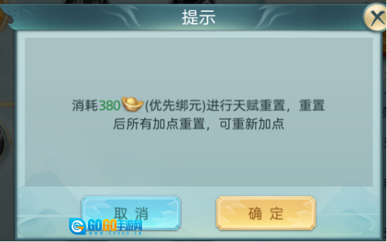 玩家能够自主执行重置天赋的操作,此操作需耗费一定数量的元宝(会优先消耗绑定元宝)来完成天赋重置。