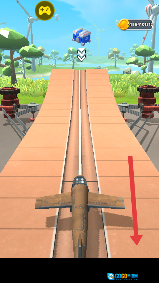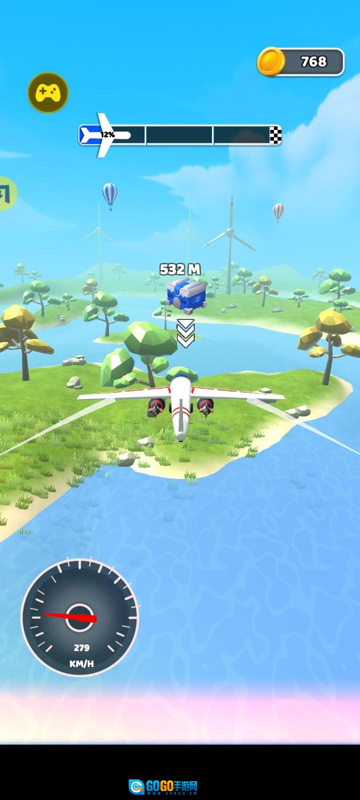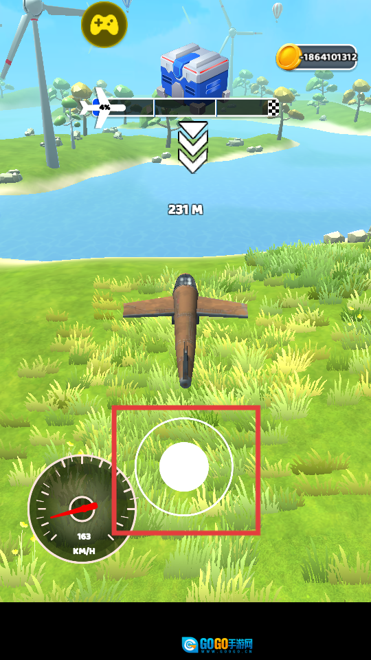 3、在飞行过程里,借助方框内的【移动按键】来操控飞机的飞行方向,尽可能让飞机飞行得更远,打破飞行记录。