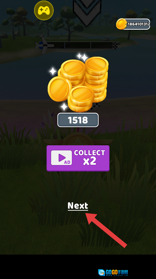 4、当飞行结束后,轻点【Next】按钮,通过菜单便捷地积累金币,这些金币可用于对飞机、发射器以及收益系统进行升级。