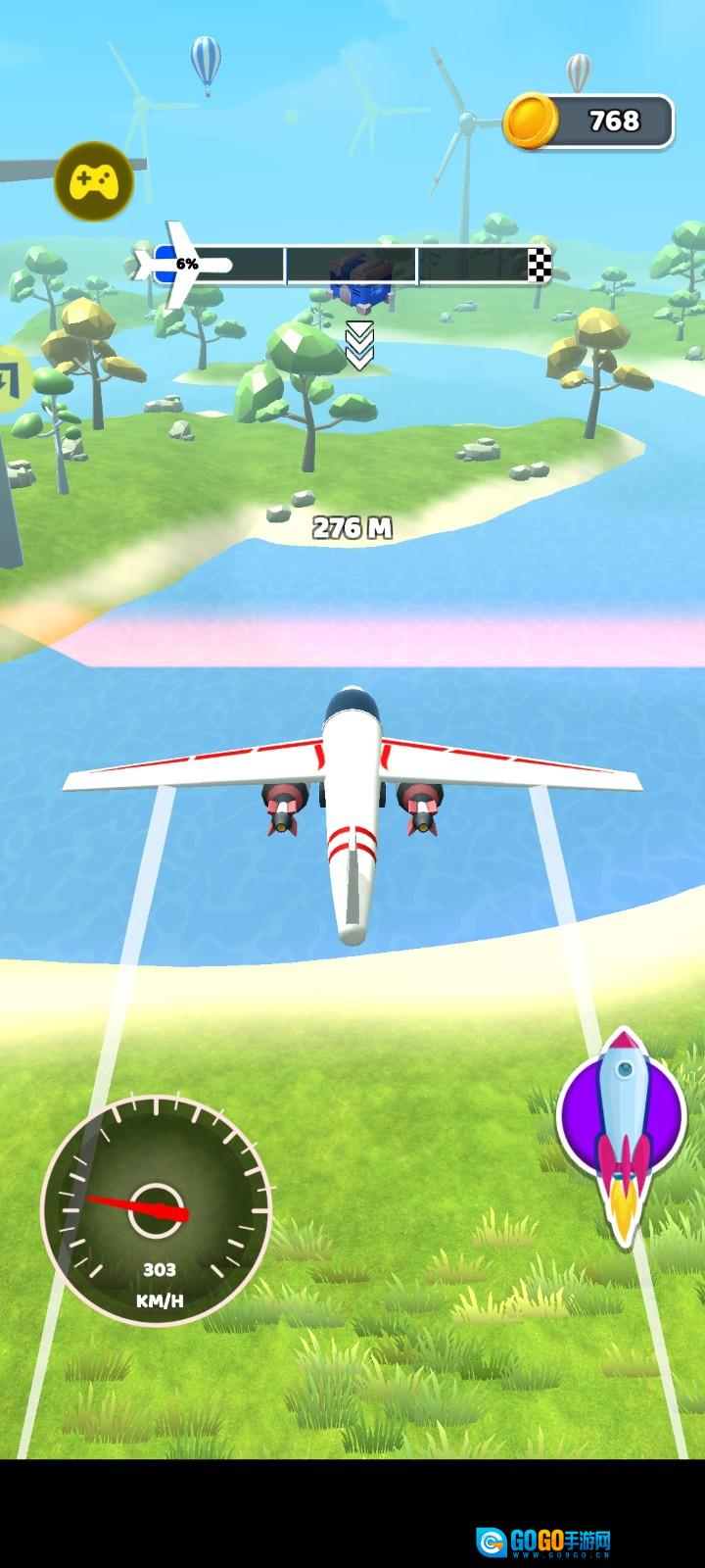 2、于准备阶段,【长按屏幕】并向后滑动屏幕蓄力,松手后飞机就能起飞。
