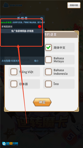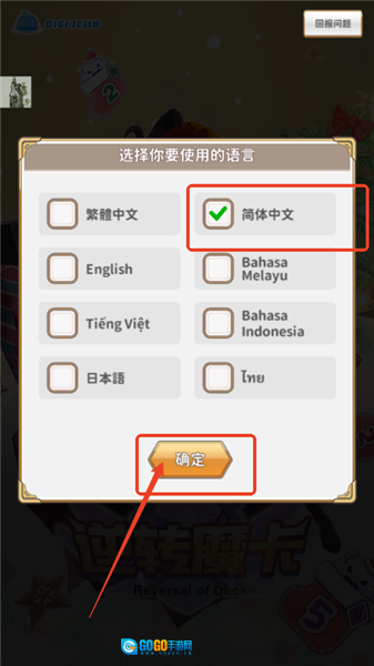 1、进入游戏时,我们需要选择语言,在此处选择简体中文即可。