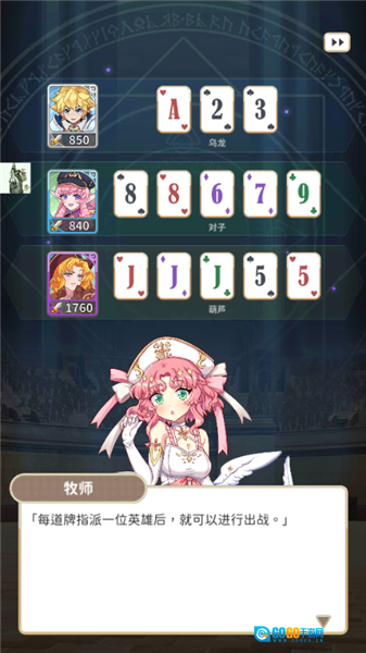 5、每道牌在指派一位英雄之后,便可进行出战。