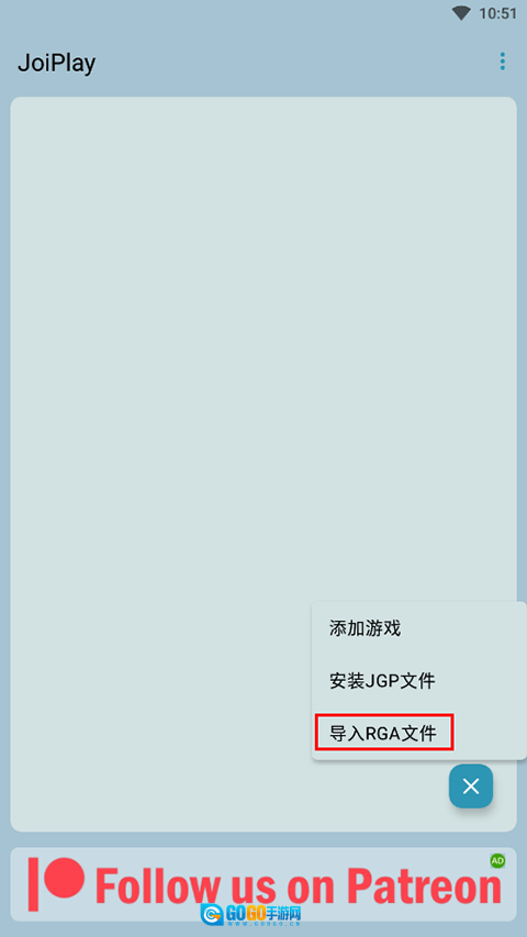 3、查找并选定已保存的rga游戏文件,系统会自动完成导入操作,游戏随后便会显示在列表当中。