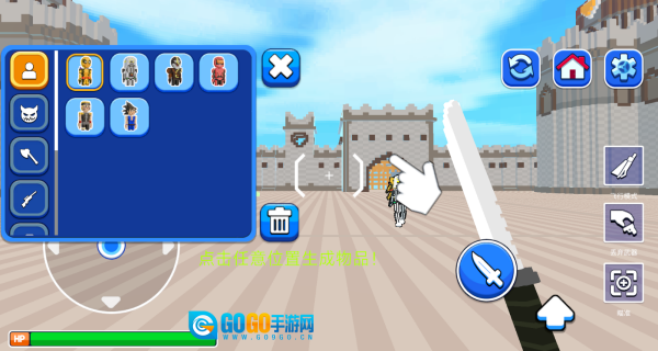 3、操作方式如下,先点击人物,接着点击屏幕上的任意一处,即可生成物品。