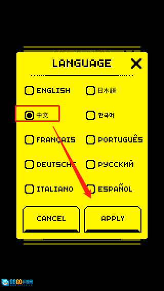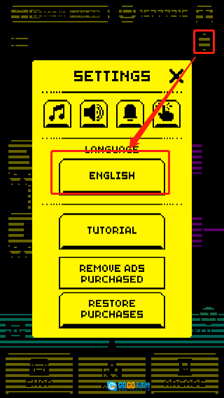 1、首次进入游戏时,默认显示语言为英文,需在设置里进行语言切换,具体操作如下图所示。