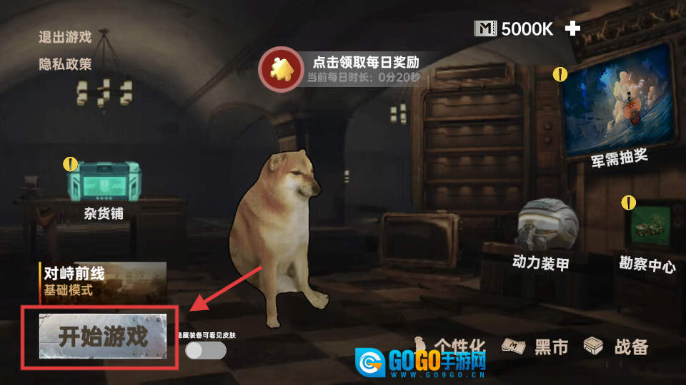 1. 点击【开始游戏】,随即进入【对峙前线 - 基础模式】,着手探索地图,搜集物资枪械,以应对敌人。
