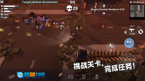 5、任务设计涵盖清扫丧尸、收集物品等目标,关卡难度逐步递增,通过明确的奖励机制推动游戏进程,凭借清晰的目标感引导玩家探索。