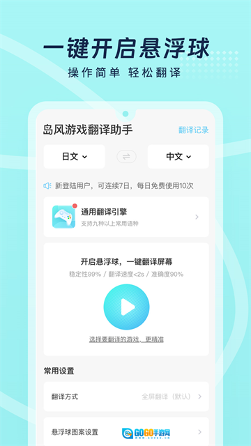 岛风游戏翻译,这是一款专门为游戏玩家量身定制的翻译软件。它具备悬浮球翻译功能,借助此功能,玩家无需退出游戏界面,只要打开悬浮球,就能快速捕捉并翻译游戏里的关键文字。而且,该软件支持英文、日文、韩语、繁体中文等多种常见语种的翻译,如此一来,喜爱玩游戏的朋友们就能毫无阻碍地畅玩各类海外游戏啦。有需求的朋友,赶紧来本站下载体验一番吧!