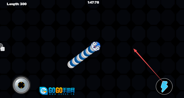 2. 必要时,点击右侧的加速按钮,能让蛇进行短暂冲刺,借此摆脱危险或追击目标。