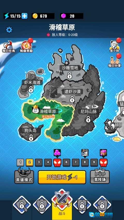 游戏里存在超大地图,其上分布着各类关卡,像滑稽草原、尼玛山脉、逮虾沙漠、狗头岛、虾米海滩以及沙雕雪地。这些处于不同地理位置的关卡,各自有着不同程度的难度挑战。所以,你得合理组合搭配相应的兵种,以此实现世界的统一。