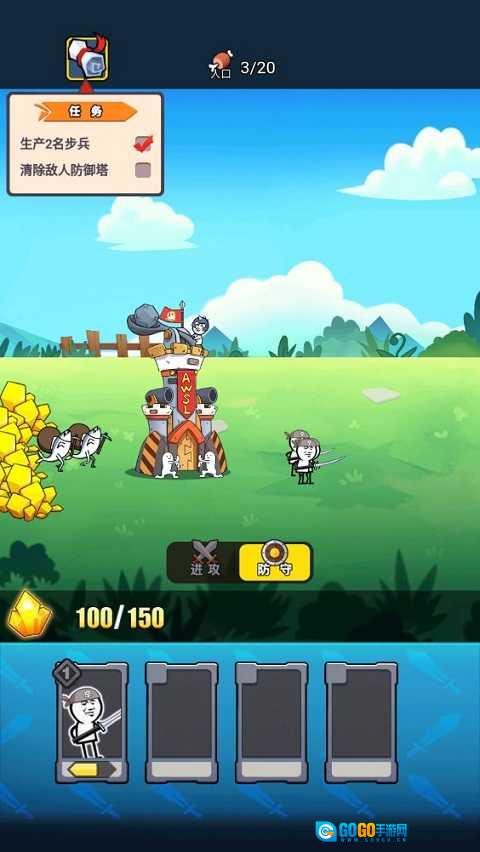 3、着力提升士兵实力,全力击败敌人,进而摧毁其防御塔。