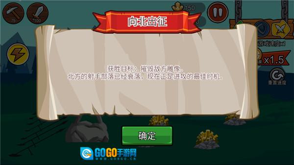 3、挑选普通模式,进入游戏后,你会发现游戏任务为摧毁敌方雕像。