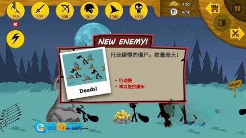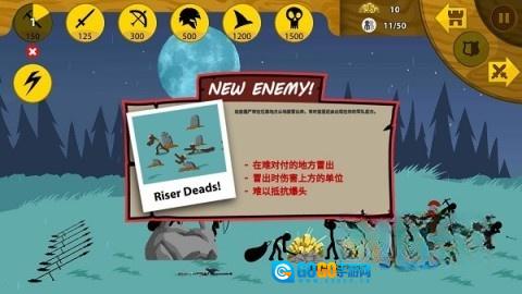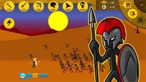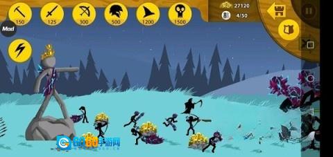 游戏开局,优先派出一名矛兵,接着招募8名矿工(要注意,每个矿场仅能容纳两名矿工同时挖掘,若招募过多,多余的矿工就会跑到敌方矿区)。当敌军来袭,要迅速操控矛兵,同时让矿工撤退,城堡中的弓兵是最强大的火力输出,锁定目标,保证敌人无法靠近雕像。