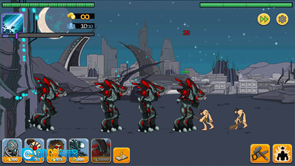 从山顶洞人骑着恐龙,在世界大战中利用坦克训练出一支庞大的军队!一路摧毁未来的机器人战士!这里有众多不同的单位可供训练,时间跨度涵盖7个截然不同的战争年代。多达29种单元类型任您调配,比如进攻型的斯巴达勇士、阿努比斯的战士、法师、骑士、步兵炮、榴弹兵、机器人等等,还有更多!要是您觉得最强的进攻源于坚固的防御,那就尝试堆叠一排炮塔,截断敌人的攻势!没错,我们还有著名的鸡塔,这可是必建之物。