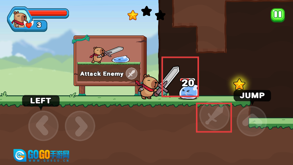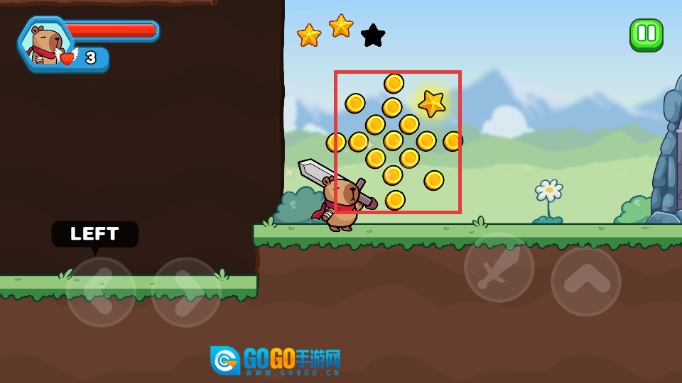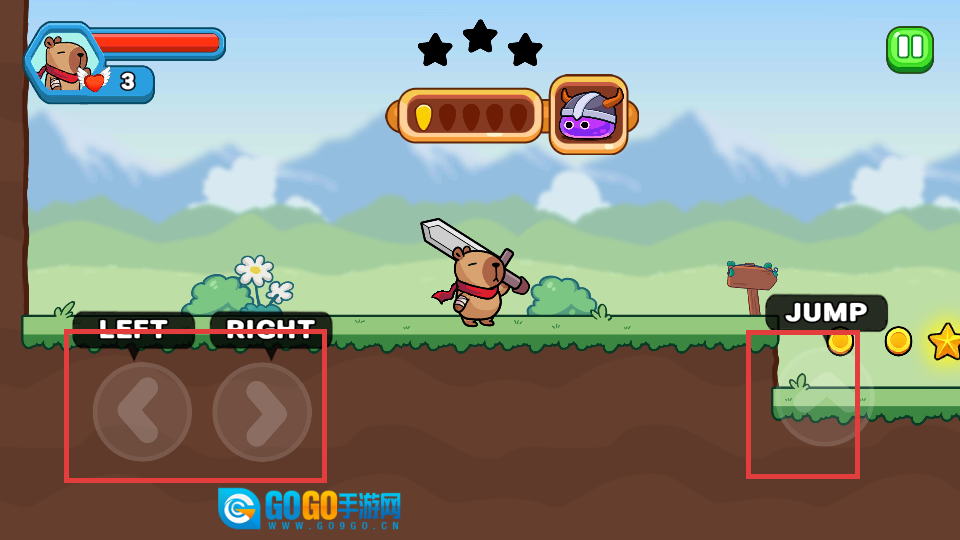 1. 通过左右方向键操控角色移动,点击跳跃按键以跨越障碍,并收集金币与星星。