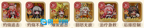阵容特色:群体遭受灼烧效果,后排输出具备高额伤害。