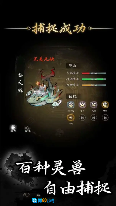 1. 进入游戏后,着手捕捉你的灵兽。在出现的选项中,点击其中一个,随即点击“捕捉”,若操作得当,即可成功捕获。