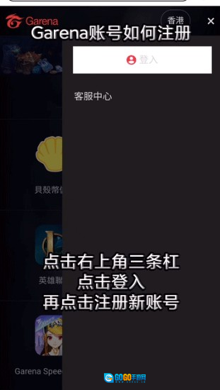 -点击右上角三条杠,点击登入,再点击注册新账号